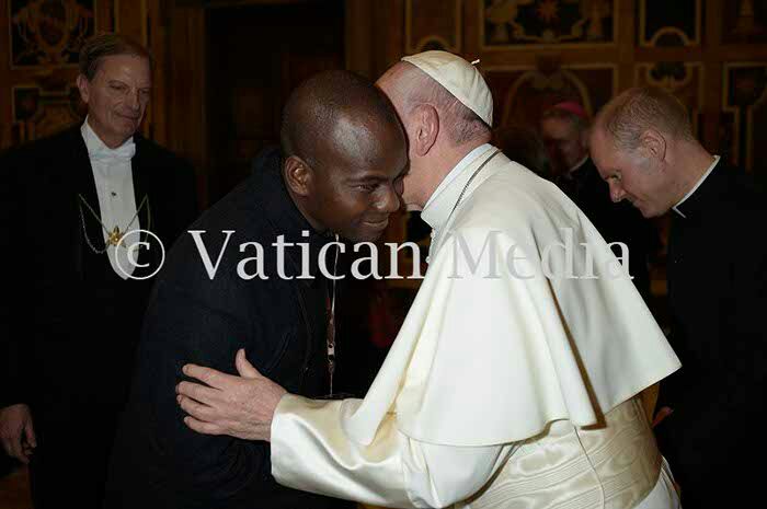 La sinergia creata con l’”Umofc” (l’Unione Mondiale Organizzazioni Femminili Cattoliche di cui è presidente la professoressa itrana Maria Giovanna Ruggieri,ndr) e con la “Onlus Guine Action” ha permesso ai componenti del coro di incontrare il 12 febbraio 2018 Papa Francesco presso la sala Clementina in Vaticano.
